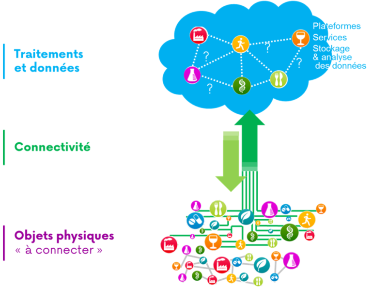 C’est parti !L’internet des objets (IoT, Internet of Things) se situe à la confluence des secteurs de l’informatique et des communications électroniques, où tout objet communique, peut être interrogé, envoie de l’information et interagit. L’Union Internationale des Télécommunications (UIT) définit ainsi en 2012 l’internet des objets comme une « infrastructure mondiale pour la société de l’information, qui permet de disposer de services évolués en interconnectant des objets (physiques ou virtuels) grâce aux technologies de l’information et de la communication interopérables existantes ou en évolution ».