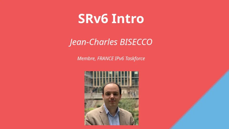 Cette vidéo, proposée par Jean-Charles Bisecco pour la Task-Force IPv6 et l'Arcep présente le protocole SRv6 (Segment Routing over IPv6 dataplane).