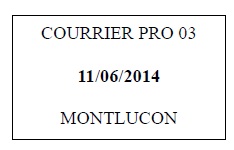 Sarl COURRIER PRO 03 Voir le logo (jpg - 29 Ko) | 12/09/2017 Décision n° 17-1082 | COURRIER PRO 03 31 rue de Blanzat, 03100 Montluçon Courriel : contact(@)courrierpro03.fr Téléphone: 06 35 55 38 74 | Voir le marquage (jpg - 8,21 Ko) | Services d’envois de correspondance incluant la distribution. Agglomérations de Montluçon |