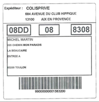 Le mode de dépôt d'une réclamation pour le client expéditeur est : - téléphone : 0 805 50 50 10 ; appel gratuit - site internet : www.colisprive.com/moncolis/ - application "MonColisPrivé" sur téléphone Iphone. | Voir le marquage (jpg - 38 Ko) | Services d’envois de correspondance incluant la distribution.