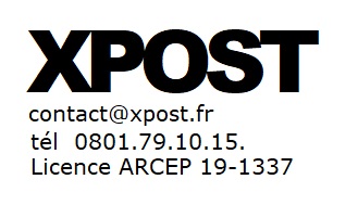 Voir le logo (jpg - 7,92 Ko) | 17/09/2019 Décision n° 19-1337 | 35 rue Gustave Delory 59 000 LILLE Courrier électronique : contact(@)xpost.fr Téléphone : 0801 7910 15 Site : www.xpost.fr | Voir le marquage (jpg - 23 Ko) | Services d’envois de correspondance incluant la distribution. Zone de commercialisation : Région Hauts-de-France |