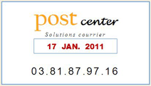 Courriel : postcenter(@)sfr.fr Téléphone : 03 81 87 97 16 | Voir le marquage (gif - 10,83 Ko) | Services d’envois de correspondance incluant la distribution. Agglomérations de Besançon et ses alentours |