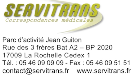 SERVITRANS Voir le logo (jpg - 10,29 Ko) | 09/12/2020 Décision n° 20-1434 15/04/2025 Décision n° 25-0800 | Rue des 3 frères Bat A2, 17000 LA ROCHELLE Courrier électronique : contact(@)servitrans.fr Téléphone : 05 46 09 09 09 Télécopie : 05 46 09 51 51 | Voir le marquage (jpg - 55 Ko) | Services d’envois de correspondance incluant la distribution. Territoire desservi : les départements de Charente, Charente-Maritime, Corrèze, Deux-Sèvres, Dordogne, Finistère, Gironde, Ille-et-Vilaine, Loire-Atlantique, Morbihan, Vendée, Vienne et Haute-Vienne. |