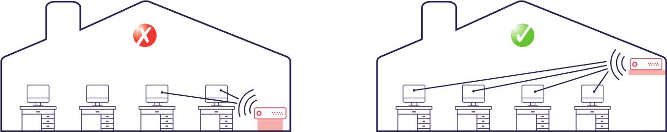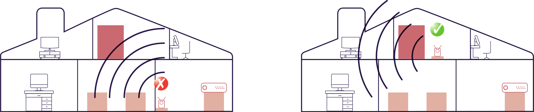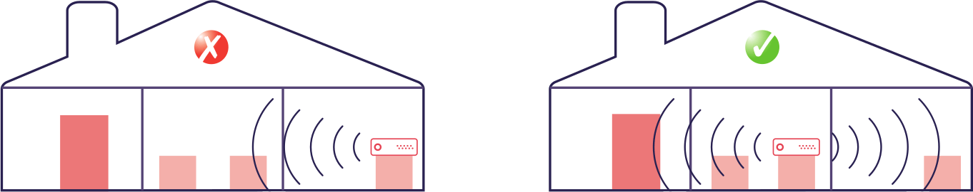 Il est recommandé de placer la box dans une pièce centrale du logement afin de limiter les obstacles que le Wi-Fi rencontre pour se connecter aux terminaux. En effet, les murs atténuent le signal radio et diminuent sensiblement le débit internet reçu par les équipements situés dans les pièces les plus éloignées. Ainsi, placer la box à l’extrémité du logement ou dans un local fermé ne permet pas de tirer le meilleur parti du réseau Wi-Fi.