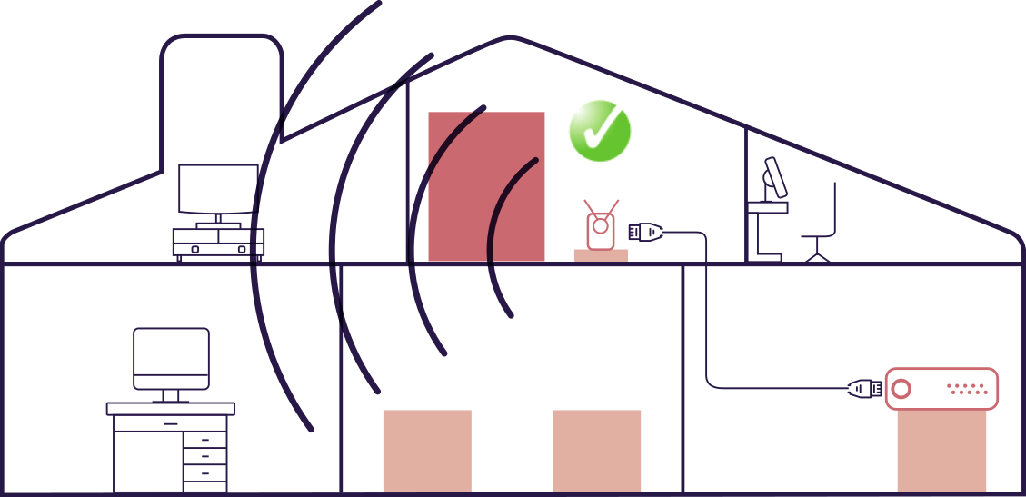Afin que votre répéteur Wi-Fi puisse fonctionner, il doit être placé environ à mi-distance entre votre box et la zone à couvrir. S’il est trop près de votre box, il ne va pas étendre votre Wi-Fi. S’il est trop loin, il captera mal le Wi-Fi de votre box et le débit répété sera faible.