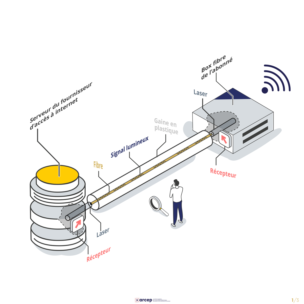 Par analogie avec les routes, la fibre optique est utilisée pour les autoroutes, les routes nationales et départementales d'Internet depuis de nombreuses années. Le réseau en fibre optique jusqu'à l'abonné correspond, lui, aux rues desservant chaque maison et immeuble et est en cours de construction.
